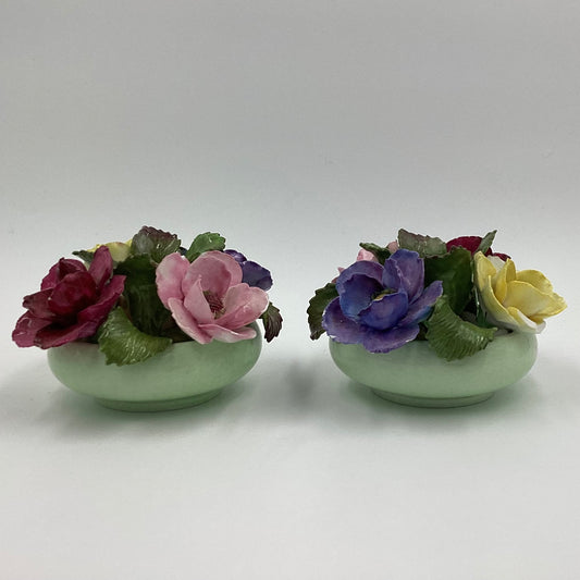 Pair of Porcelain Floral Candlestick Holders